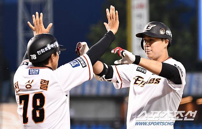 2022 KBO리그 한화 이글스와 두산 베어스의 경기가 25일 한화생명이글스파크에서 열렸다. 4회말 2사 한화 권광민이 안타를 날린 뒤 환호하고 있다. 대전=박재만 기자 pjm@sportschosun.com/2022.05.25/