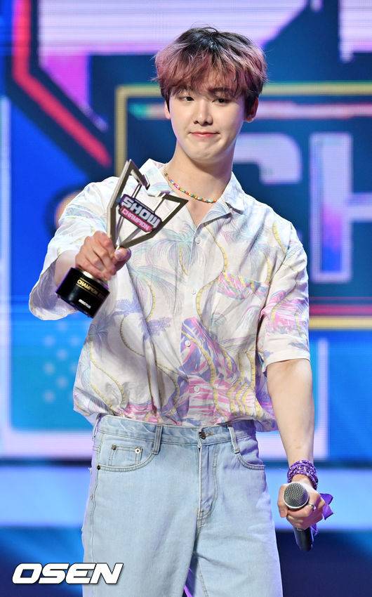 아스트로 산하,'쇼챔피언 1위 트로피를 흔들며' [사진]