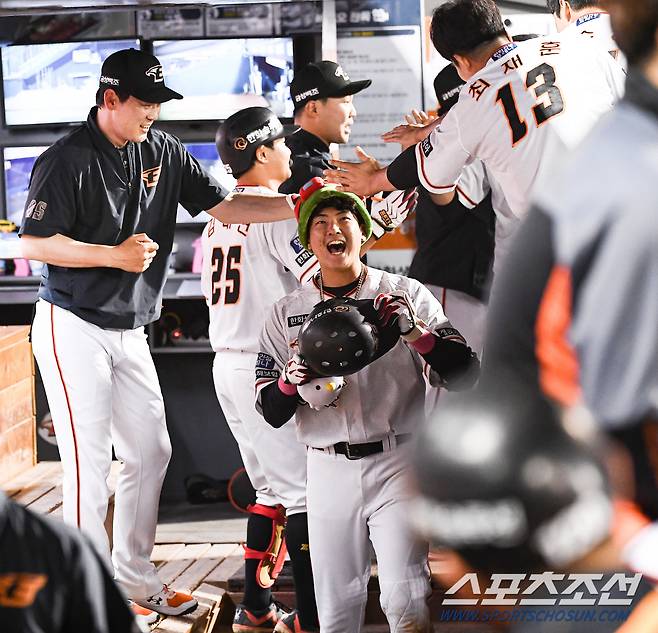[포토] 한화 박상언-최재훈 '데뷔 첫 홈런포 축하해'