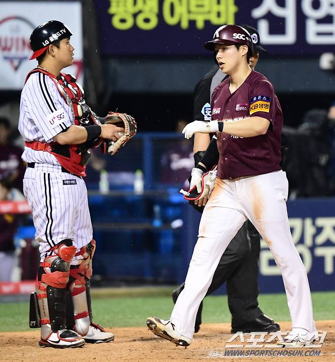 [포토] 3루타 치고 걸어 들어오는 김혜성