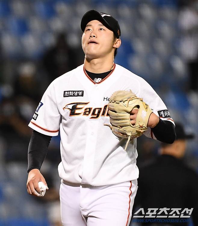 2022 KBO리그 한화 이글스와 두산 베어스의 경기가 25일 한화생명이글스파크에서 열렸다. 한화 남지민이 이닝을 마친 뒤 숨을 고르고 있다. 대전=박재만 기자 pjm@sportschosun.com/2022.05.25/