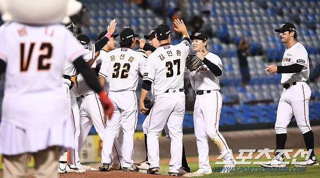 2022 KBO리그 한화 이글스와 두산 베어스의 경기가 25일 한화생명이글스파크에서 열렸다. 경기에서 14대1로 승리한 한화 선수들이 기뻐하고 있다. 대전=박재만 기자 pjm@sportschosun.com/2022.05.25/