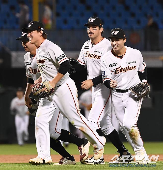 2022 KBO리그 한화 이글스와 두산 베어스의 경기가 25일 한화생명이글스파크에서 열렸다. 경기에서 14대1로 승리한 한화 선수들이 기뻐하고 있다. 대전=박재만 기자 pjm@sportschosun.com/2022.05.25/