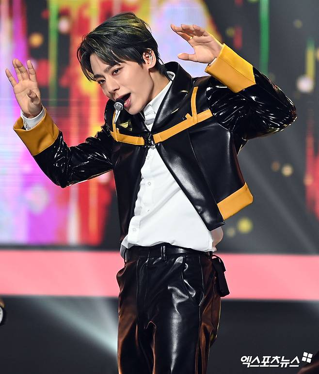 (엑스포츠뉴스 고양, 김한준 기자) 25일 오후 경기도 고양시 일산 MBC드림센터에서 열린 MBC M '쇼 챔피언' 현장공개에 참석한 원어스 환웅이 멋진 공연을 선보이고 있다.