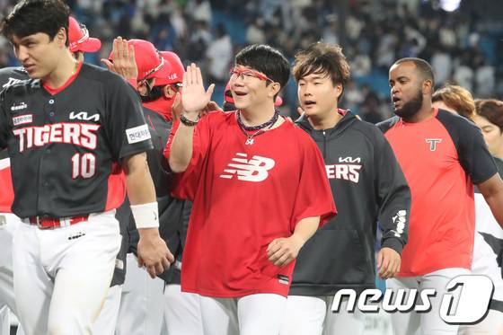 (대구=뉴스1) 공정식 기자 = 25일 오후 대구 삼성라이온즈파크에서 열린 프로야구 '2022 신한은행 SOL KBO리그' KIA 타이거즈와 삼성 라이온즈의 경기, 11 대 5 승리를 거두며 1승을 추가한 KIA 양현종이 기뻐하고 있다. 2022.5.25/뉴스1