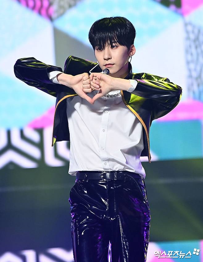 (엑스포츠뉴스 고양, 김한준 기자) 25일 오후 경기도 고양시 일산 MBC드림센터에서 열린 MBC M '쇼 챔피언' 현장공개에 참석한 원어스 건희가 멋진 공연을 선보이고 있다.