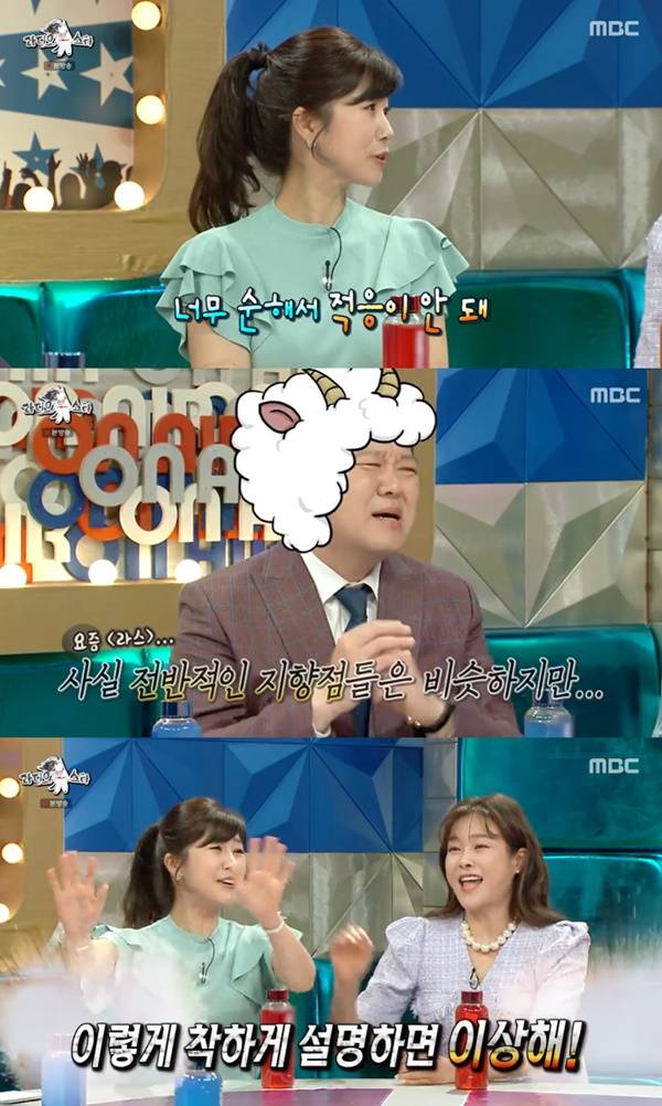 김구라가 "사실 우리도 전반적인 지향점은 비슷하다"고 하자, 강수정은 "이렇게 착하게 설명하면 이상하다"고 말해 주위를 폭소케 했다.