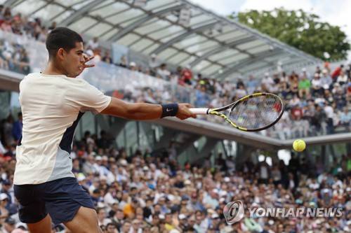 Spain's Carlos Alcaraz returns the ball to Spain's Albert Ramos-Vinolas during their second round match of the French Open tennis tournament at the Roland Garros stadium Wednesday, May 25, 2022 in Paris. (AP Photo/Jean-Francois Badias)