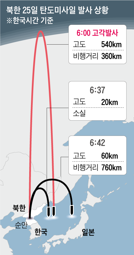 북한이 25일 발사한 미사일은 신형 ICBM(대륙간탄도미사일) ‘화성-17형’ 추정 미사일 1발과 단거리탄도미사일(SRBM) 2발이다. 올해 들어 17번째 무력시위인데, 미 본토를 사정거리로 둔 화성-17형과 대남 타격용 단거리탄도미사일을 섞어 쏜 것은 이번이 처음이다. 북한이 조 바이든 미국 대통령의 방한 이후 강화된 한미 동맹을 견제하려 양국을 겨냥한 미사일을 동시 발사한 것이라는 분석이 나온다.