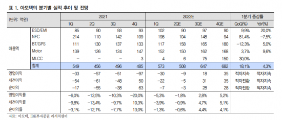 김운호 IBK투자증권 연구원은 "올해 2분기까지 실적 개선을 기대하기는 어려운 전망"이라며 "국내 고객의 물량 감소, 모바일 부품이 부진할 것으로 예상되고 전장 부문도 반도체 부족으로 급격한 실적 개선을 기대하기는 어렵다"고 설명했다.