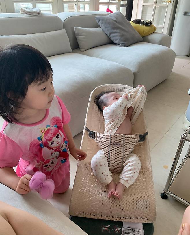 사진 속 이지혜의 둘째 딸 엘리 양은 입고 있는 옷을 잡아당기며 온몸으로 지루함을 표출하는 듯한 모습. 동생의 몸부림이 신기한 듯 옆에서 뚫어지게 바라보는 언니 태리 양의 호기심 가득한 표정이 눈길을 끈다.