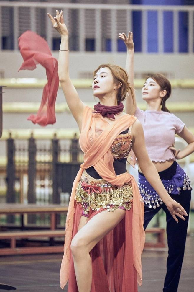 또 다른 사진에서 옥주현은 무대 의상을 입고 춤을 추고 있다.