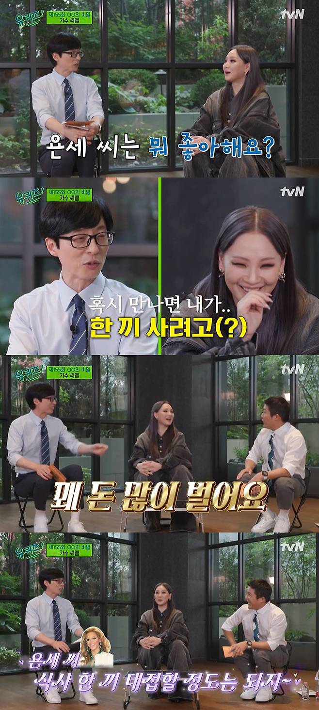 이에 조세호는 "비욘세 씨 만약에 오시면 식사 대접할 정도는 되지 않나"라고 했고 유재석은 "식사 대접할 정도는 된다"라고 수긍해 웃음을 안겼다. 그러면서 씨엘에게 "욘세 씨 오면 한 번 이야기 해달라"고 말해 웃음을 더했다. tokkig@sportschosun.com