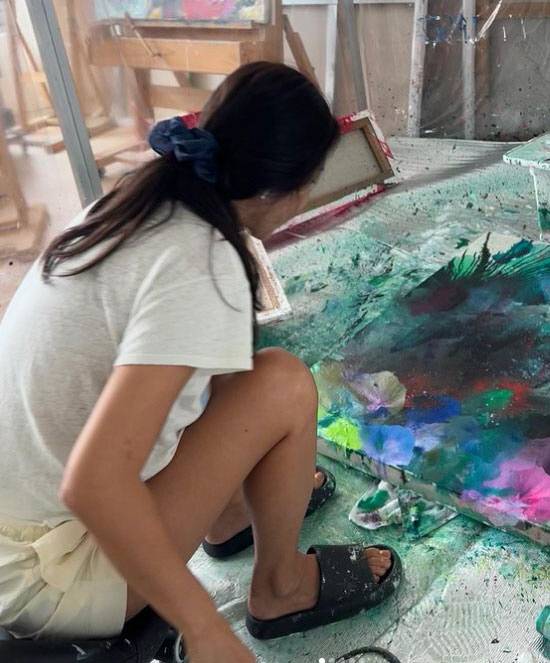 공개한 사진에는 작업실에서 그림 작업 중인 이혜영의 모습이 담겼다. 캔버스 위에 다양한 색상으로 표현 중인 이혜영의 작품 세계가 눈길을 끈다.