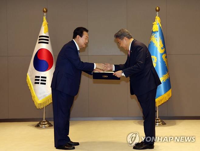 윤석열 대통령, 박진 외교부 장관에 임명장 수여