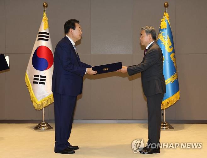 윤석열 대통령, 이종섭 국방부 장관에 임명장 수여