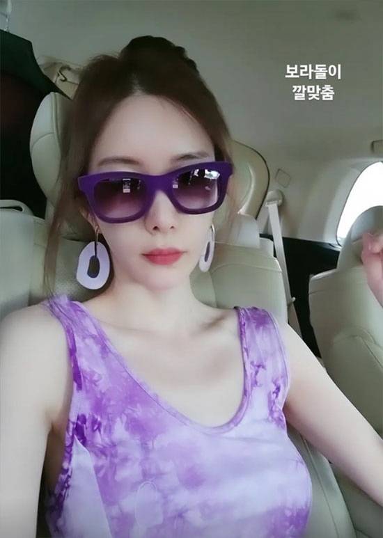보랏빛 원피스를 입은 신주아는 우아한 매력이 더욱 돋보인다. 이어 보라색 선글라스와 귀걸이까지 '깔맞춤'을 한 신주아는 외출에 나서 눈길을 끈다.