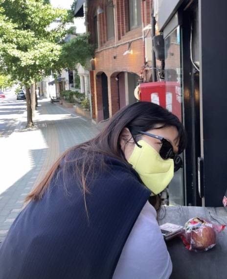 사진에는 카페에서 휴식을 취하고 있는 홍현희의 모습이 담겼다.