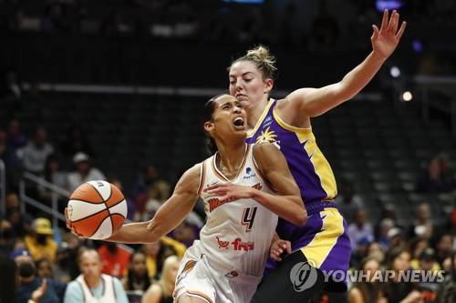epaselect epa09976203 Phoenix Mercury guard Skylar Diggins-Smith (L), drives to the basket while being guarded by Los Angeles Sparks forward Katie Lou Samuelson (R), during the second quarter of the WNBA basketball game between the Los Angeles Sparks and Phoenix Mercury at Crypto.com Arena, in Los Angeles, California, USA, 25 May 2022. EPA/CAROLINE BREHMAN SHUTTERSTOCK OUT