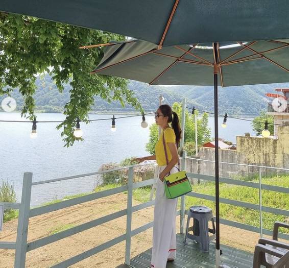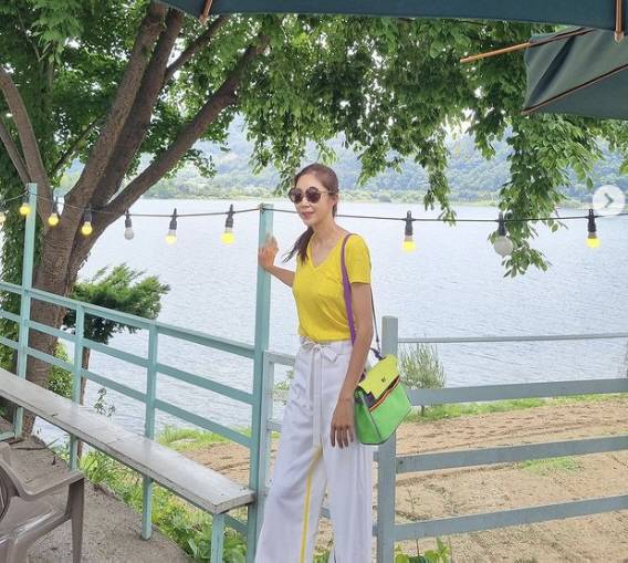 전미라는 여름의 싱그러움이 느껴지는 화사한 옷을 입고 선글라스로 포인트를 준 패션을 선보였다.