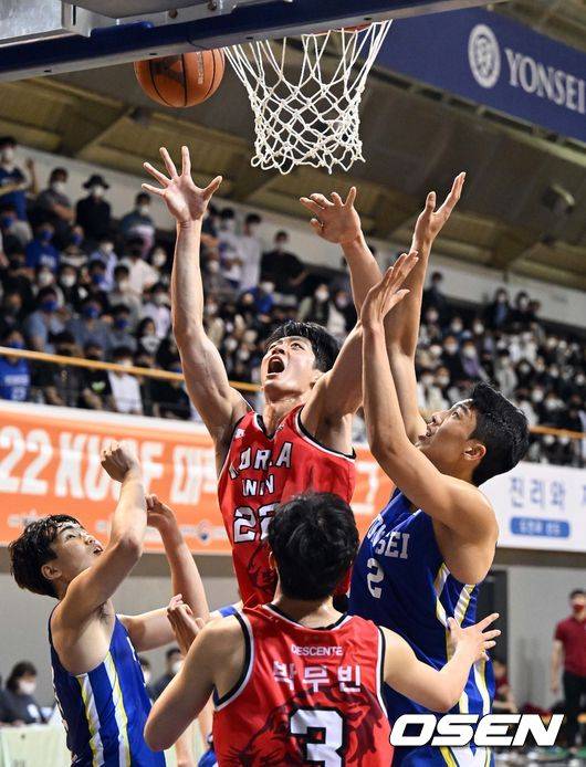 [OSEN=조은정 기자] 26일 오후 서울 서대문구 연세대학교 체육관에서 2022 KUSF 대학농구 U-리그 연세대와 고려대의 경기가 열렸다.