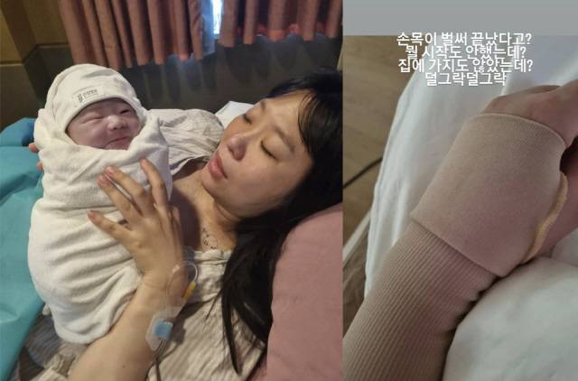 사진 속 정주리는 왼쪽 손목에 보호대를 착용한 자신의 손을 촬영 중이다. 최근 넷째 아들 출산 후 산후조리원에서 지내고 있는 정주리. 그는 "뭘 시작도 안 했는데?"라며 본격적인 4형제 육아 시작도 전에 손목 통증에 당황했다.