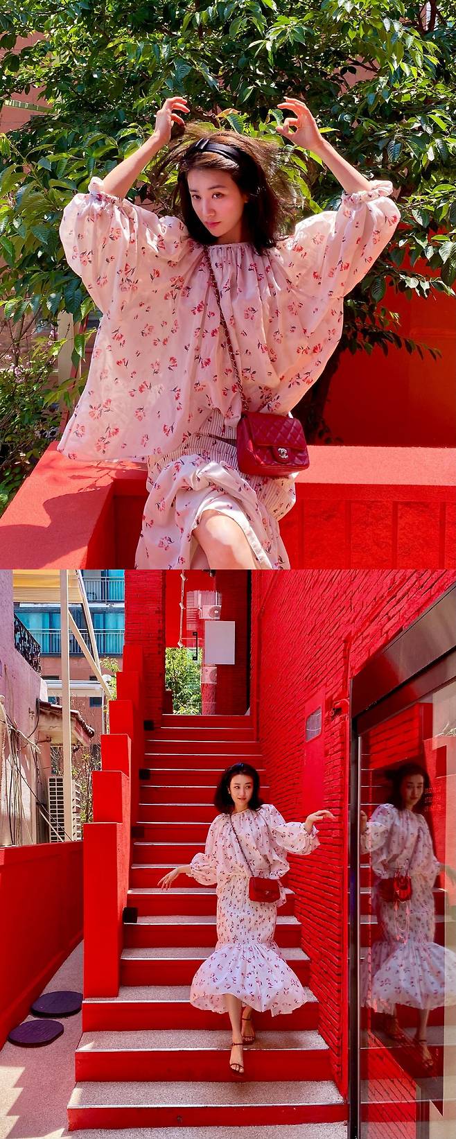 공개된 사진 속 박하선은 장미꽃이 그려진 롱 레드원피스로 봄 기운을 즐겼다. 유니크하면서도 독특한 스타일이 박하선만의 매력을 느끼게 했다.