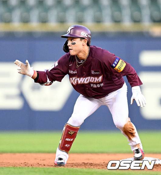 3회초 1사 2루에서 키움 김태진이 선제 1타점 적시 2루타를 날리고 기뻐하고 있다. 2022.05.26 /jpnews@osen.co.kr
