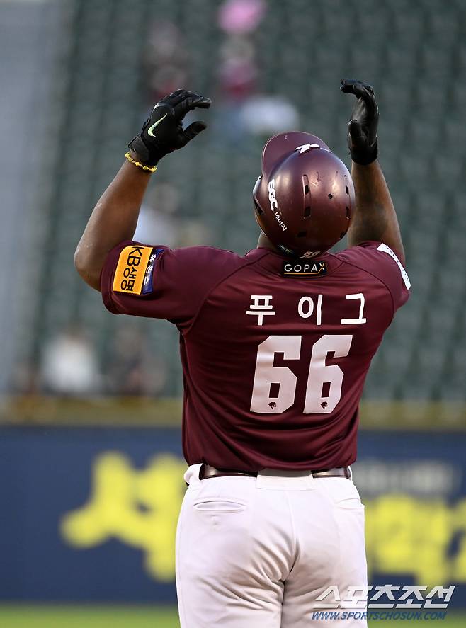 2022 KBO리그 키움 히어로즈와 LG 트윈스의 경기가 26일 잠실야구장에서 열렸다. 3회초 2사 1,2루 키움 푸이그가 1타점 적시타를 치고 기쁨을 나누고 있다. 잠실=허상욱 기자wook@sportschosun.com/2022.05.26/