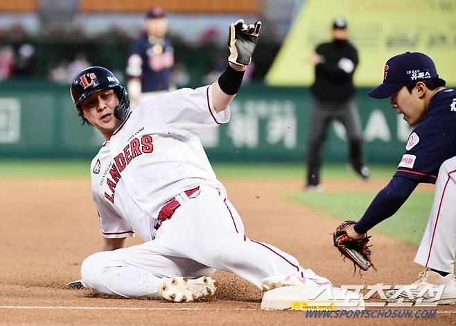 [포토] 최정 '발 빠르게 찬스 살리며 3루까지'