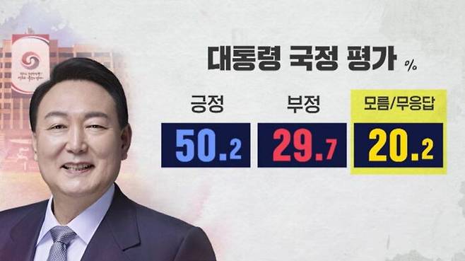 '잘하고 있다' 50.2%, '잘못하고 있다' 29.7%로 나타났습니다.