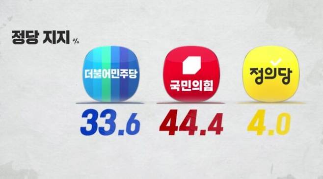 지지 정당으로는 국민의힘 44.4%, 민주당 33.6%, 정의당 4%로 집계됐습니다.