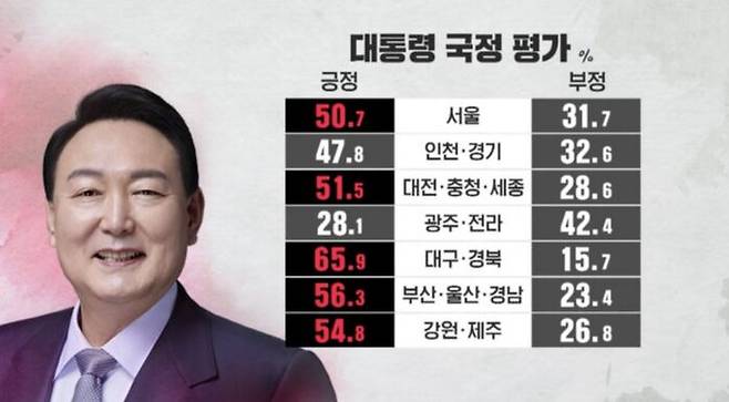 윤석열 대통령의 국정 운영에 대해서도 물어봤습니다. 잘하고 있다는 응답이 절반을 조금 넘었습니다. 또 52.2%는 국정 안정을 위해 이번 지방선거에서 여당 후보에게 힘을 실어주겠다고 답했습니다.