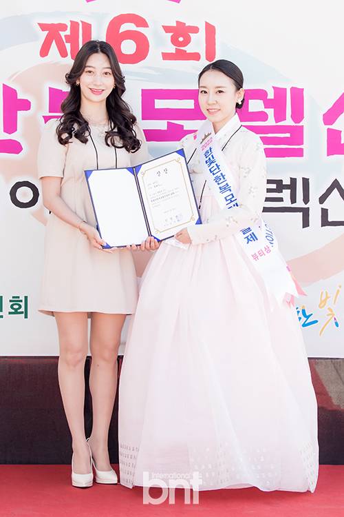 [bnt포토] '한빛단한복모델선발제'에서 기념촬영 중인 한빛단 나애리-뷰티상 김예인