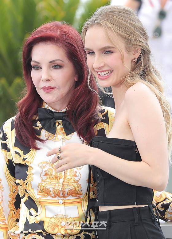 배우 프리실라 프레슬리와 올리비아 더용이 26일(현지시간) 오후 프랑스 칸 팔레 데 페스티발에서 열린 '제75회 칸 국제영화제'(Cannes Film Festival) 영화 ‘엘비스’ 포토콜에 참석해 포즈를 취하고 있다.