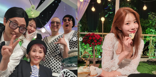 공개된 사진 속 신봉선은 유재석, 김숙, 하하, 정준하와 함께 단체사진을 찍은 모습.