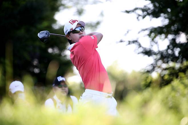[서울=뉴시스] 이영환 기자 = 26일 경기 이천 블랙스톤 이천GC(북서코스)에서열린 KB금융 리브챔피언십 1라운드, 이형준이 18번홀에서 드라이버 티샷을 하고 있다. (사진=KPGA 제공) 2022.05.26. photo@newsis.com *재판매 및 DB 금지