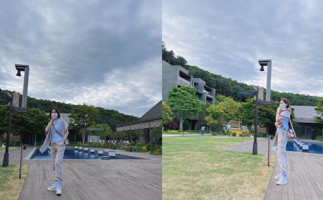 공개된 사진 속 이혜원은 경치 좋은 야외에서 포즈를 취하고 있다.