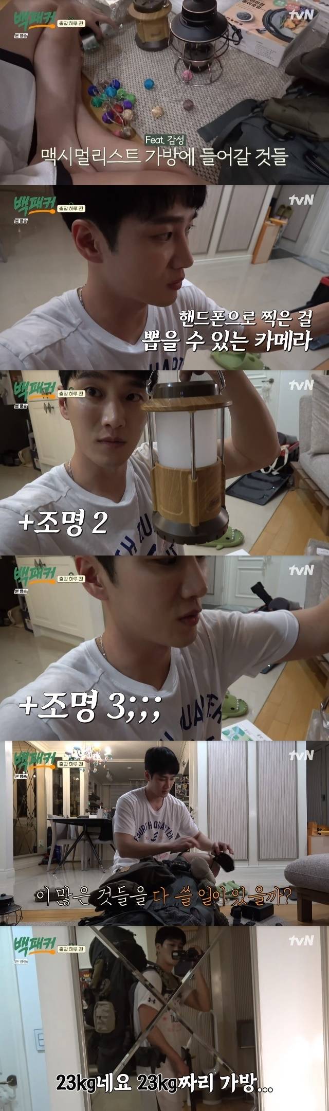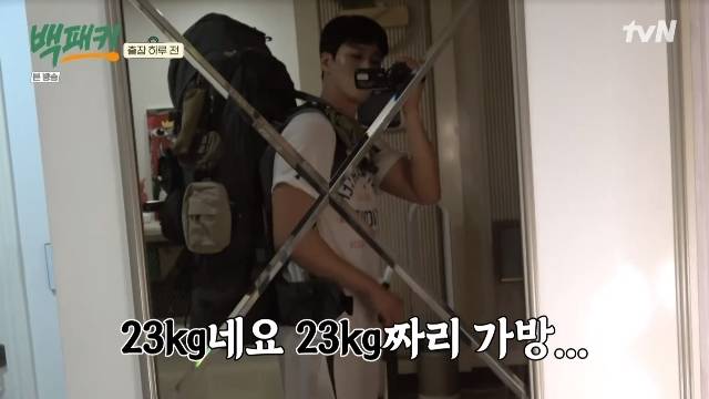 그러면서도 안보현은 멤버들을 만나 "저는 가방 얼마 안 된다"고 말하는 여유를 보였다. (사진=tvN '백패커' 캡처)
