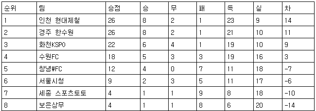 2022 WK리그 중간순위(26일)