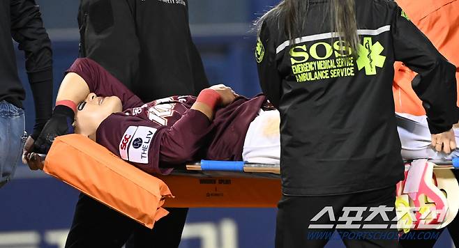 [포토] 고통스런 김태진, 들것에 실려 구급차로