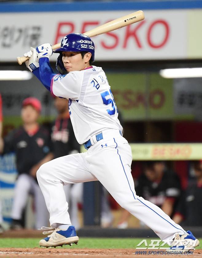 26일 대구 라이온즈파크에서 열린 KIA 타이거즈와 삼성 라이온즈 경기. 8회말 무사 1루 김지찬이 안타를 치고 있다. 대구=정재근 기자 cjg@sportschosun.com/2022.5.26/