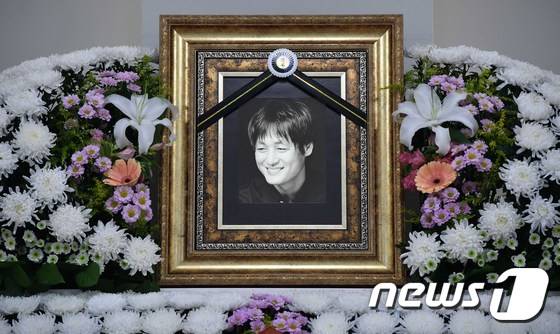 (서울=뉴스1) 사진공동취재단 = 26일 오후 서울 중랑구 서울의료원 장례식장에 배우 이얼(58·이응덕)의 빈소가 마련돼 있다. 드라마 '스토브리그', '보이스4' 등을 비롯해 스크린과 브라운관을 오가며 활약해온 배우 이얼은 식도암 투병 중 별세했다. 2022.5.26/뉴스1