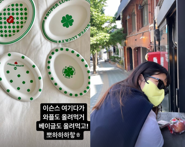 제이쓴은 "나 꼭두새벽부터 컵사러나왔다"며 "여기다가 와플도 올려먹고 베이글도 올려먹고1"라며 귀여운 멘트를 덧붙였다.