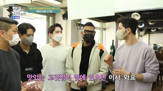 그의 최애 고깃집을 찾아간 F4는 "기욤은 집 볼 때 남향 같은 거 필요없고, 맛있는 고짓집 옆으로 이사한다"면서 역세권이 아닌 육세권을 따진다고 설명했다.