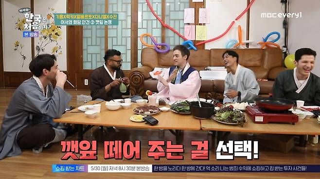 화기애애한 브라더 샤워 도중 기욤은 '깻잎 논쟁'에 대해 "아내 친구면 해주고 내 친구면 안 해준다"고 의견을 드러냈다. 그러자 럭키, 알베르토 등은 "안 된다 하지마. 망한다" "말과 현실이 다를 수 있다"라고 조언했다.