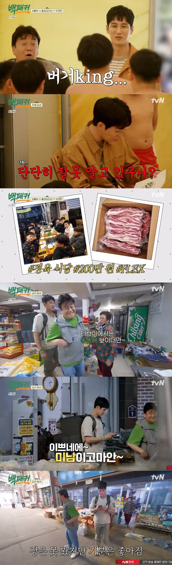 26일 첫 방송된 tvN 예능 프로그램 '백패커'에서는 정읍 칠보 씨름부 학생들에게 햄버거를 만들어주는 백종원, 딘딘, 오대환, 안보현의 모습이 그려졌다.