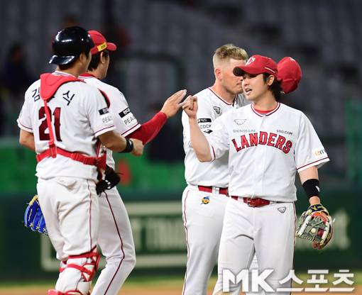 최정 '4연승을 자축하자' [MK포토]