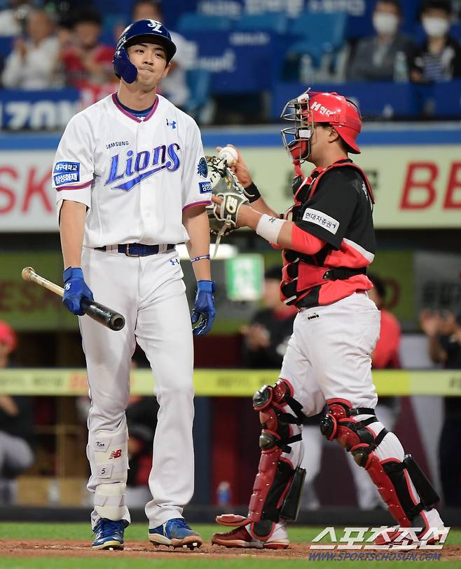 26일 대구 라이온즈파크에서 열린 KIA 타이거즈와 삼성 라이온즈 경기. 8회말 무사 만루 구자욱이 스탠딩 삼진을 당하고 있다. 대구=정재근 기자 cjg@sportschosun.com/2022.5.26/