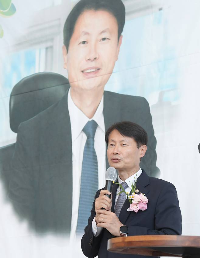 [청주=뉴시스] 강종민 기자 = 김강립 식품의약품안전처장이 26일 충북 청주 식약처에서 열린 퇴임식에서 퇴임사를 하고 있다. 2022.05.26.(사진=식약처 제공) photo@newsis.com *재판매 및 DB 금지